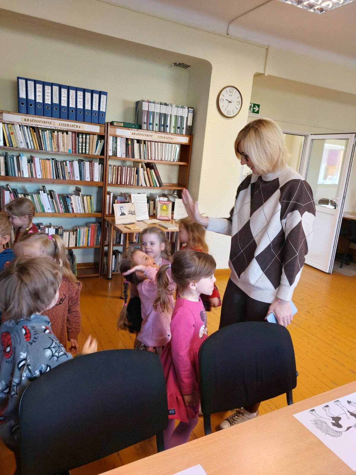 Edukacijos metu vaikai susipažino su bibliotekos erdvėmis, apžiūrėjo įvairias knygeles, gėrėjosi eksponuojama drambliukų kolekcija bei piešinių paroda. Minint Arklio metus, mažieji kūrybiškai nusiteikę spalvino arklių figūras. Išvyka paliko didelį įspūdį – atsisveikindami vaikai pažadėjo į biblioteką sugrįžti kartu su tėveliais.